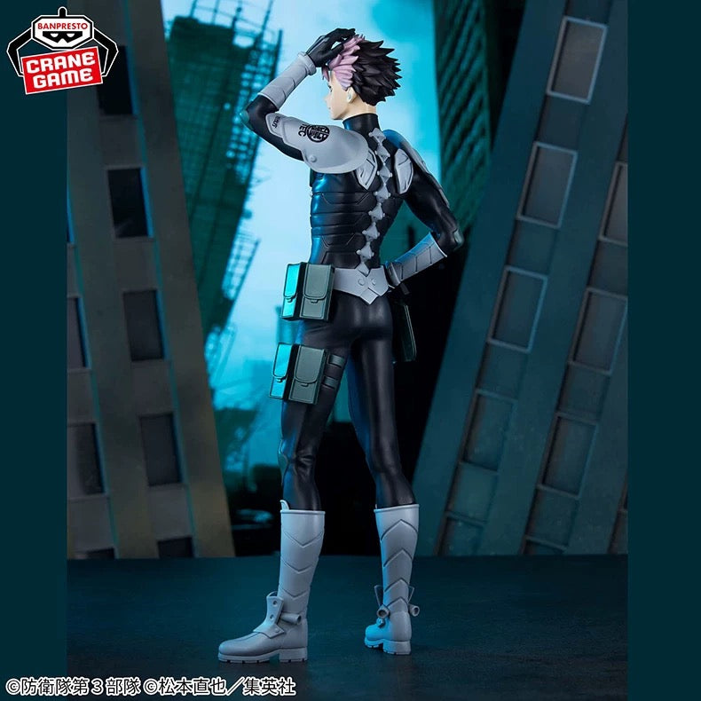 This bold kaiju no 8 figure shows Gen Narumi standing with calm power. The face sculpt is sharp and the suit lines are clean, giving a strong display look.