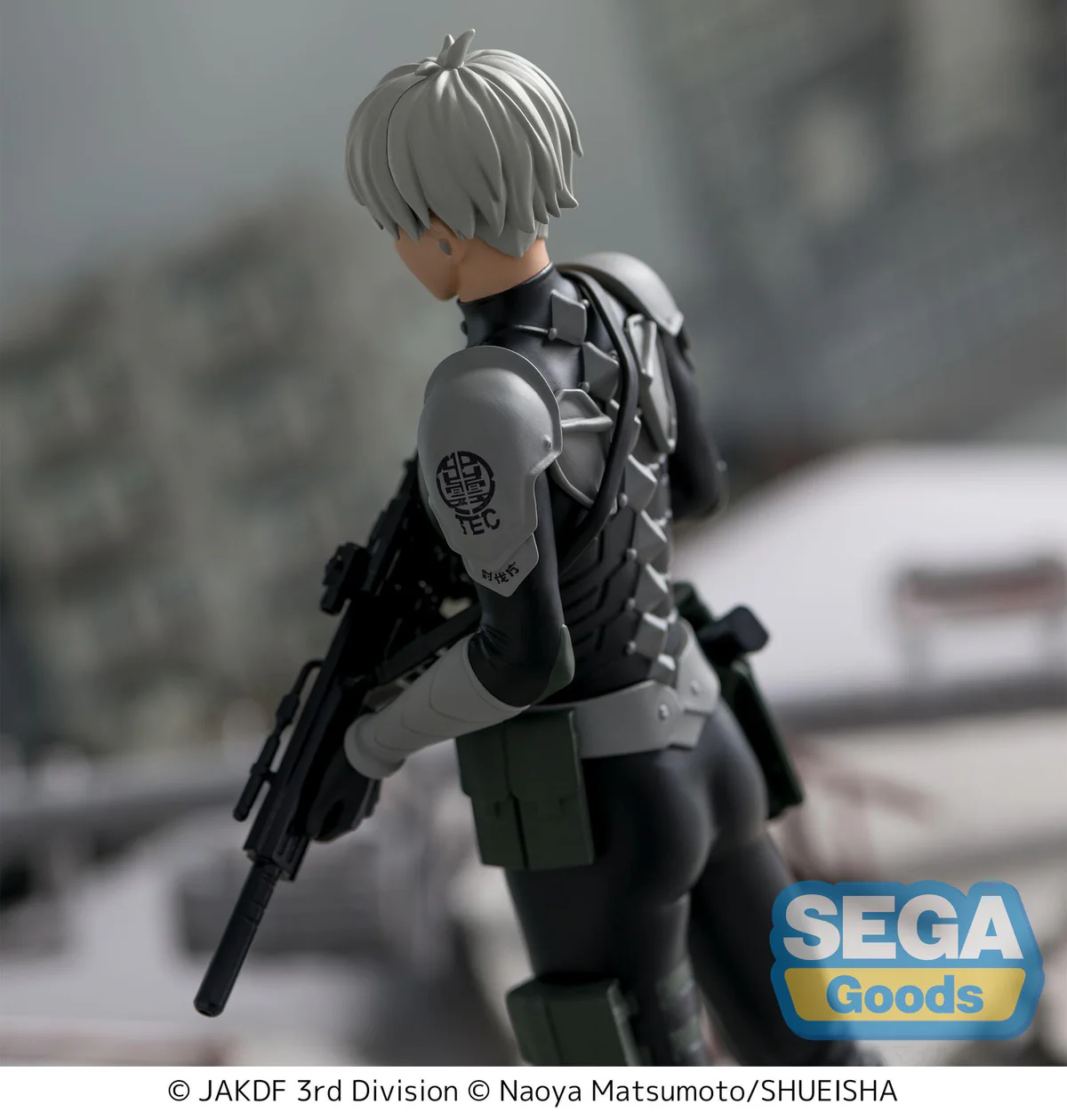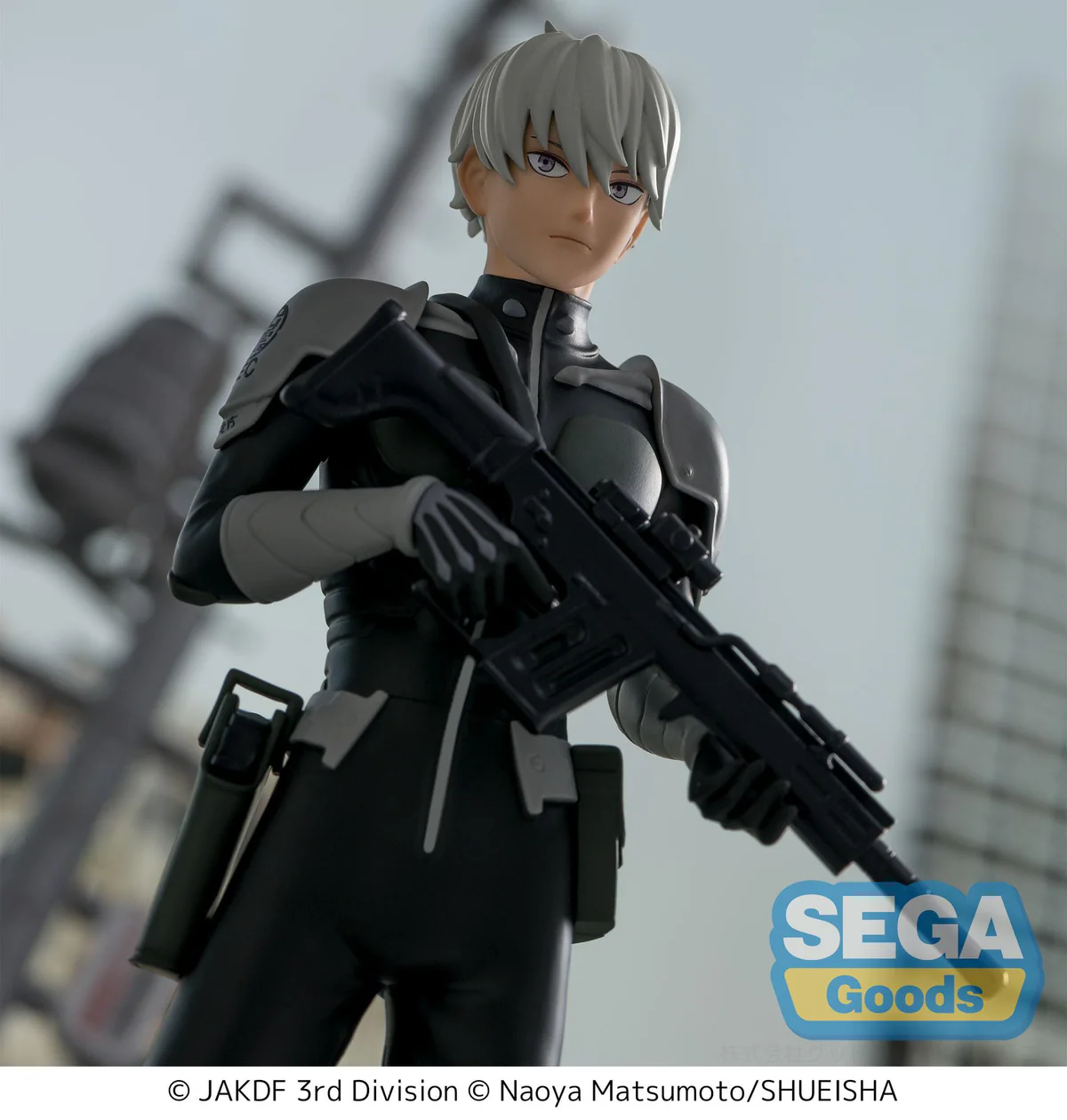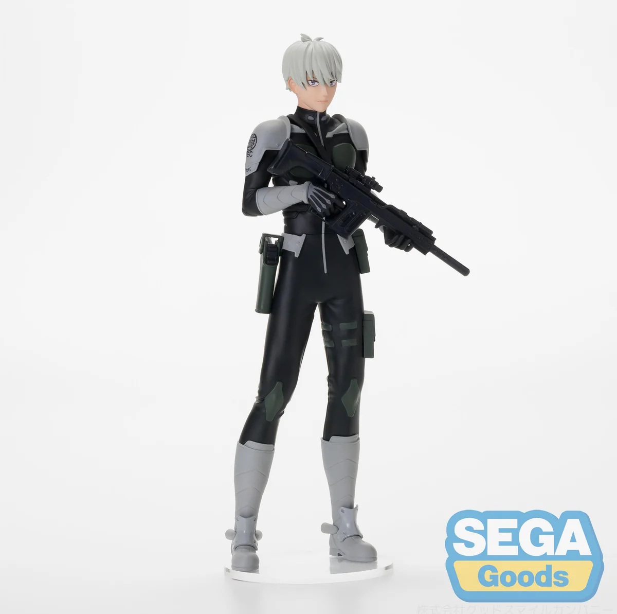Deze scherpe Kaiju nr. 8-figuur toont Reno Ichikawa, klaar om te staan met zijn geweer. De kalme houding en de fijne pantserlijnen geven een sterke, strakke uitstraling op elke plank.