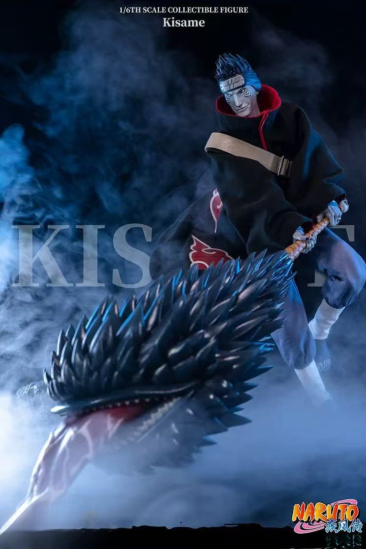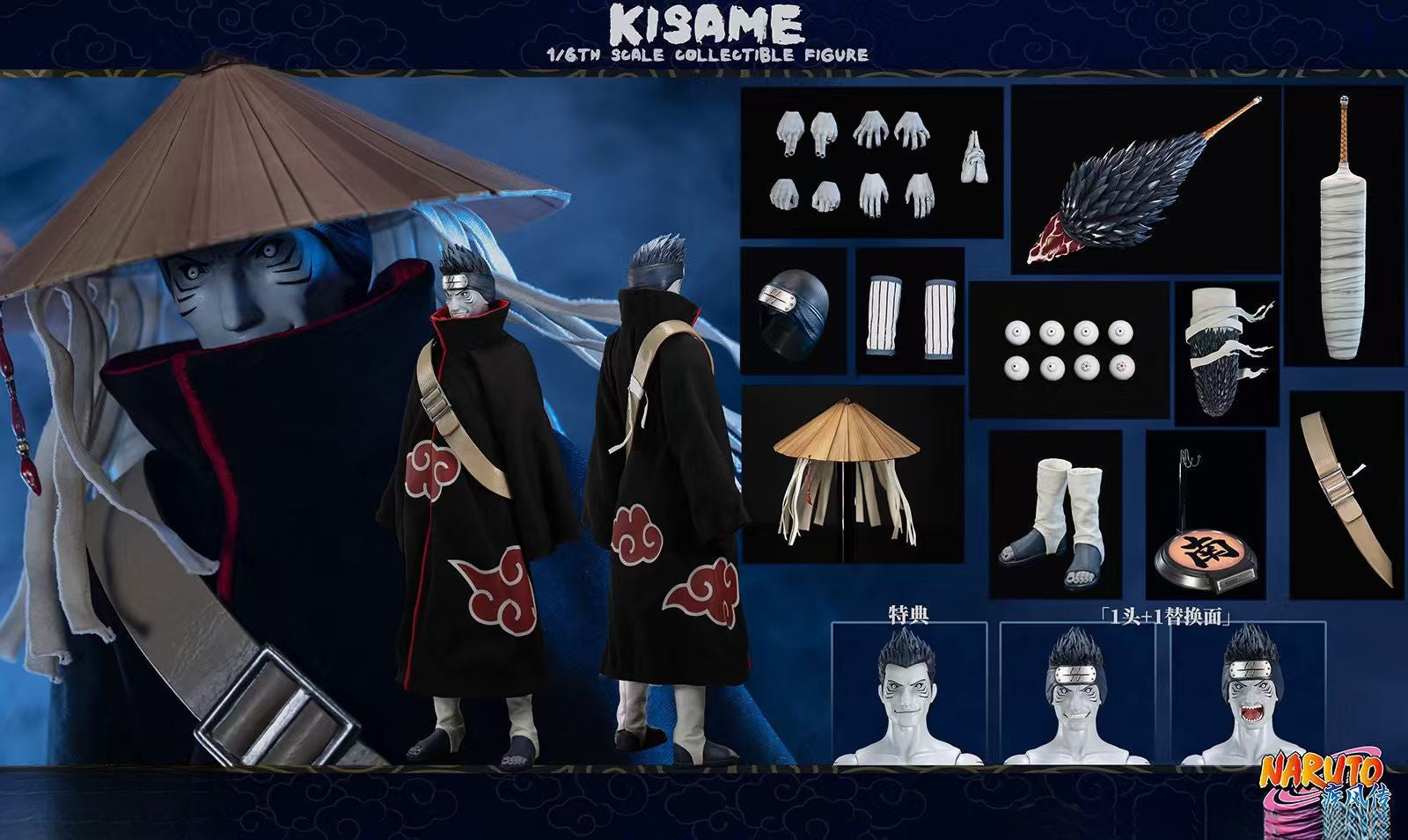Geef je tentoonstelling een kalme maar dodelijke uitstraling. Deze gedetailleerde Naruto-figuur toont Kisame in een vloeiende mantel en strohoed, met zijn enorme zwaard in de hand. Strakke lijnen en zorgvuldige verf maken het een opvallende Kisame-figuur.