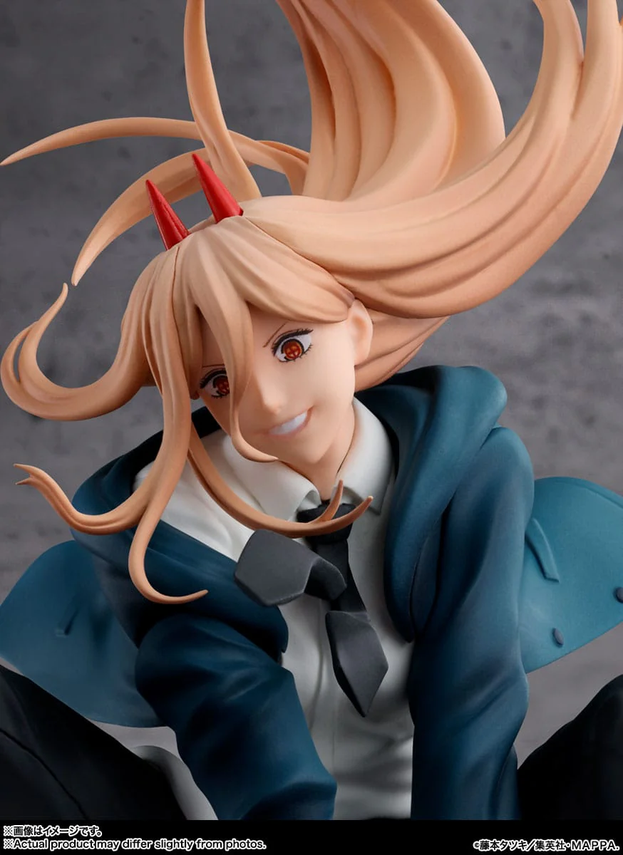 The sturdy base keeps the pose steady while the effects frame the body for an eye-catching display. Place this chainsaw man power figure beside other battle statues to build a dramatic lineup.