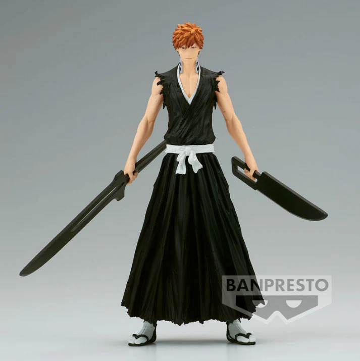 Relive the climactic moments of Bleach with this striking ichigo kurosaki figure. Ichigo stands resolute, Zanpakutō split into twin forms after their reforging, ready to unleash Getsuga Tenshō—a centre-stage bleach figure ichigo for fans across Europe.