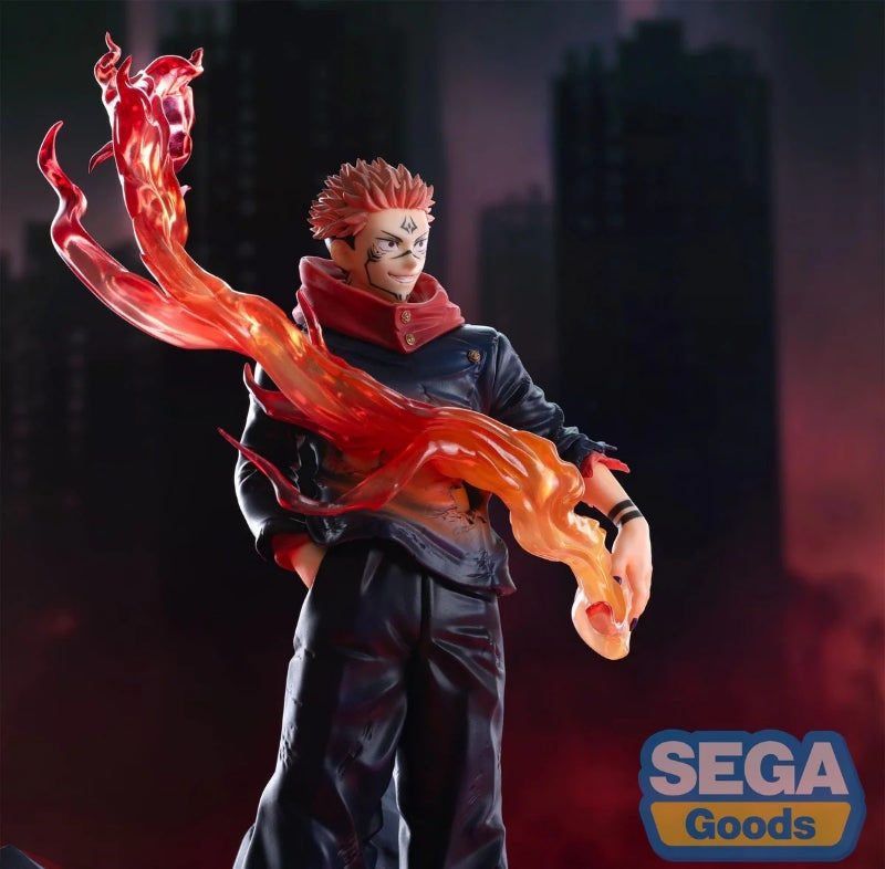 SEGA’s Luminasta sculpt captures layered robes, vein-etched forearms and wicked facial markings, while translucent orange-to-amber effects wrap around the torso for 360° display drama. Pose him beside Yuji, Megumi or your favourite sorcerers to recreate high-stakes Domain clashes across European collections.